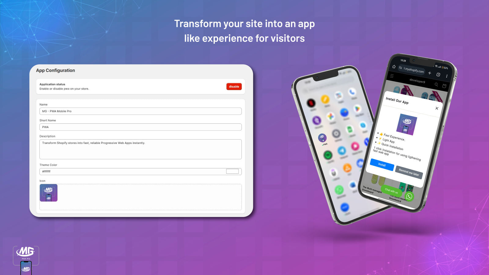 MG - PWA Mobile Pro transforms your Shopify store into a Progressive Web App (PWA), giving your customers a reliable and app-like experience directly from their web browsers. With no need for app store downloads, your store becomes instantly accessible on mobile devices.