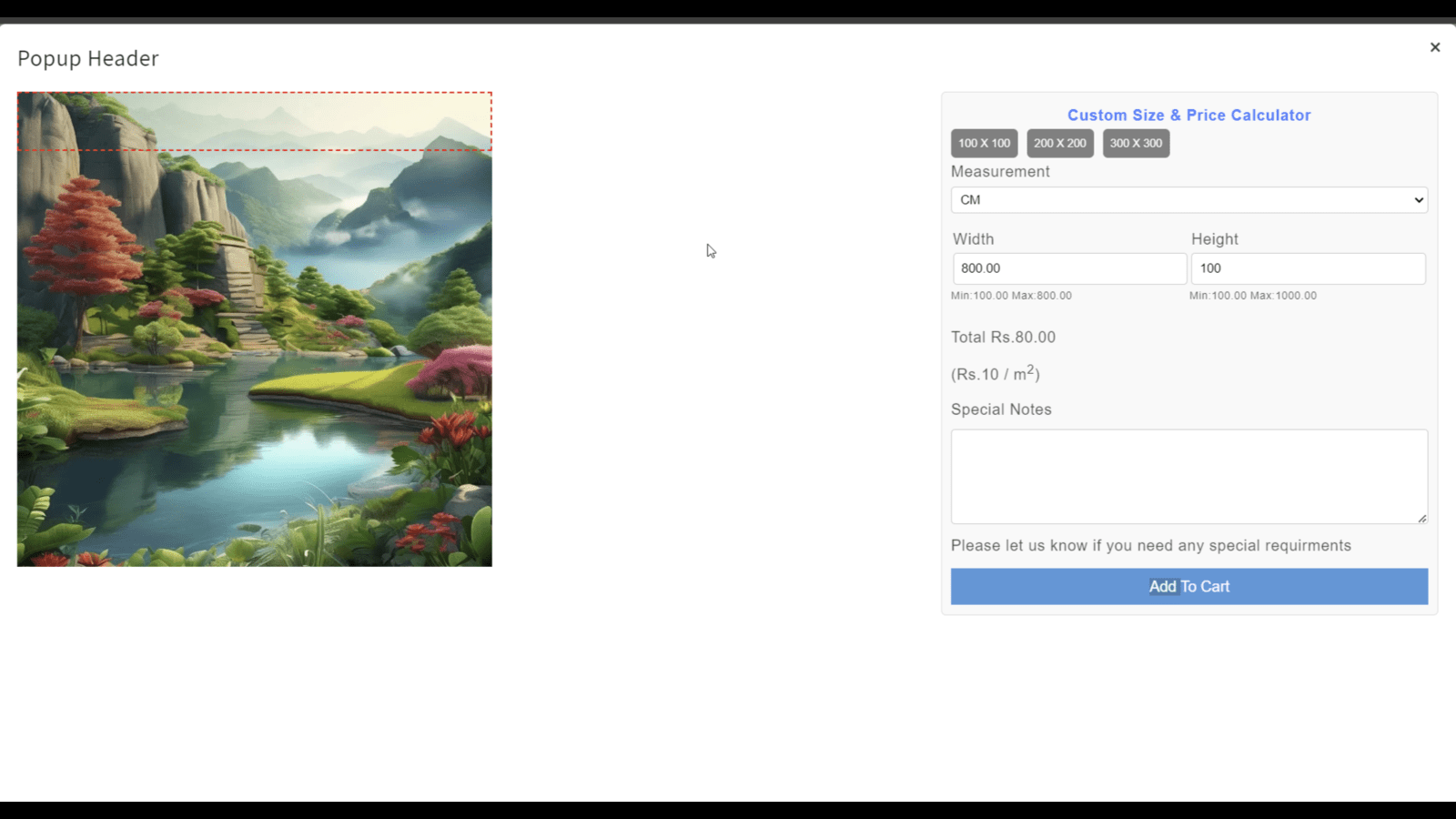 If you offer wallpaper, fabric, carpet, windows, glasses or any other customizable products, you can utilize the custom size price calculator and product visualizer on your store. The Custom Size Price Calculator is specifically created to assist businesses in determining prices based on measurements, quantity, and other factors. Recognizing that each business has distinct requirements, our team can tailor this price calculator app to meet your specific needs.