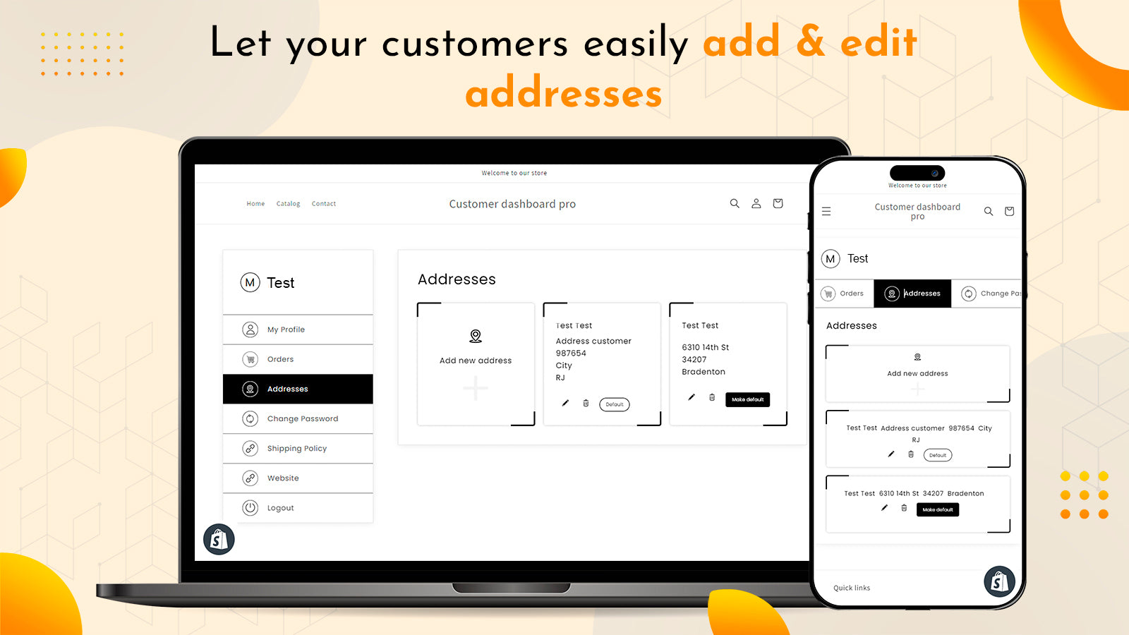 Customer Dashboard Pro is built for customizing the look and feel of the customer account page by adding custom fields, custom menus, delivery addresses, order history, change passwords, customer can easily re-order, also merchants have the facility to change color palettes according to brand with custom CSS option for advance styles. Enhanced customer portal offering a range of functional features including profile management, order history, easy reordering, customizable fields, and much more.