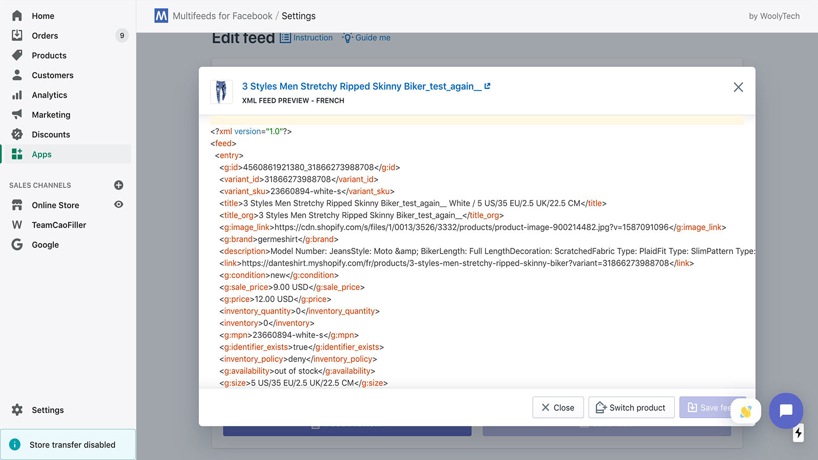 This app allow you to create and manage multiple feeds, including Product feeds (primary, supplemental, language) to list products on Facebook & Instagram Full options of feed formats: XML, CSV and TSV Compatible with: Shopify Markets, Shopify Product Reviews, Loox, Stamped.io, Judge.me, Yotpo, Growave, Okendo, GTranslate, Weglot, Shopify Translate & Adapt and all Shopify native language API translator apps.