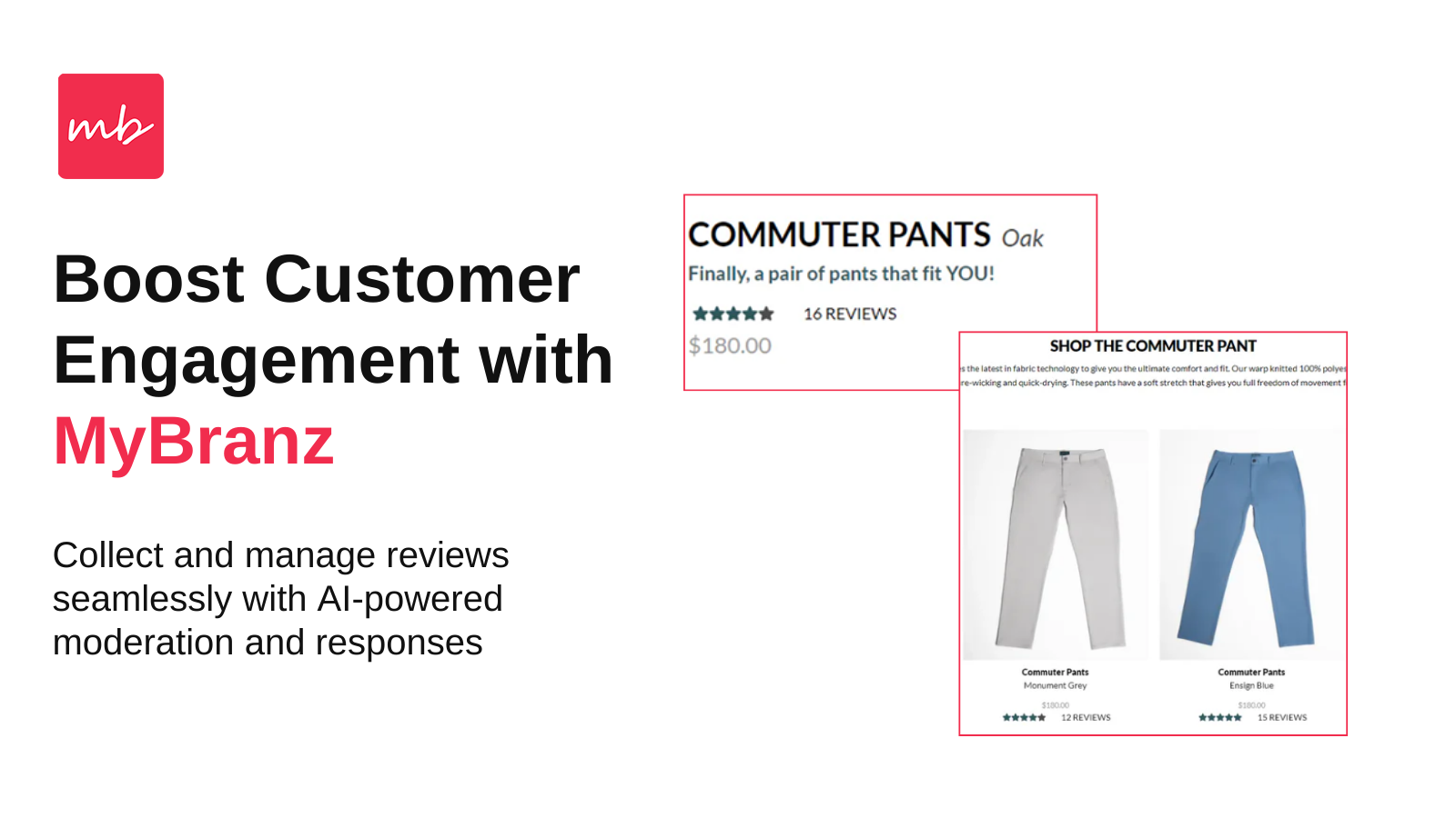 MyBranz Reviews & AI Insights automates your review management process, ensuring FTC compliance by analyzing review context with advanced AI. This prevents misleading feedback and guarantees authenticity. Gain valuable insights into customer sentiment, make data-driven decisions, and build trust. Seamlessly integrate MyBranz with your Shopify store to enhance transparency, boost sales, and stay aligned with regulatory standards through genuine, transparent reviews.