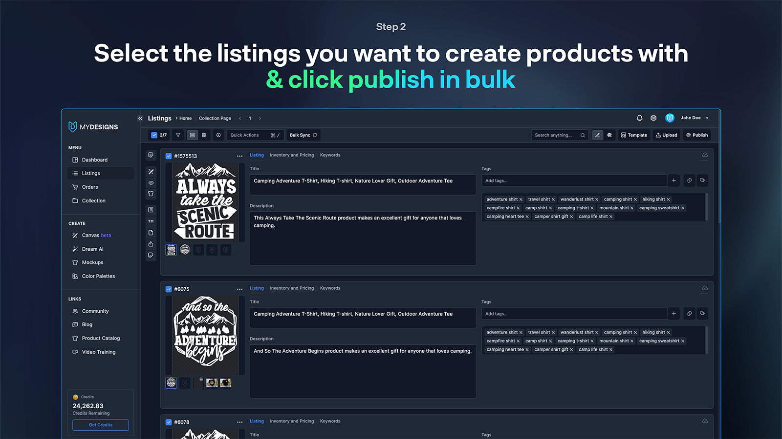 MyDesigns offers a comprehensive suite of features that streamline various aspects of the Print on Demand process. Our platform makes it effortless for users to create, publish, sell, and fulfill custom products. Enjoy the convenience of our premium mockup generator and bulk publishing capabilities, designed to help businesses save time and enhance sales.