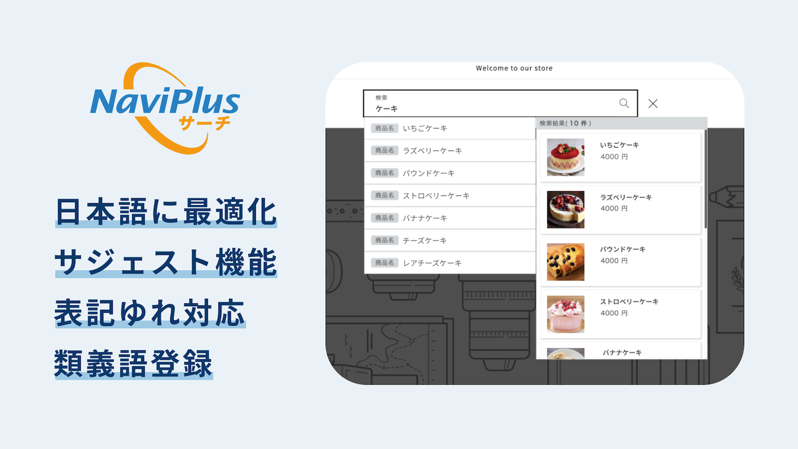 NaviPlusサーチは日本語に最適化した検索サービスです。検索機能を強化することでユーザーが目的の商品にたどり着きやすくなります。