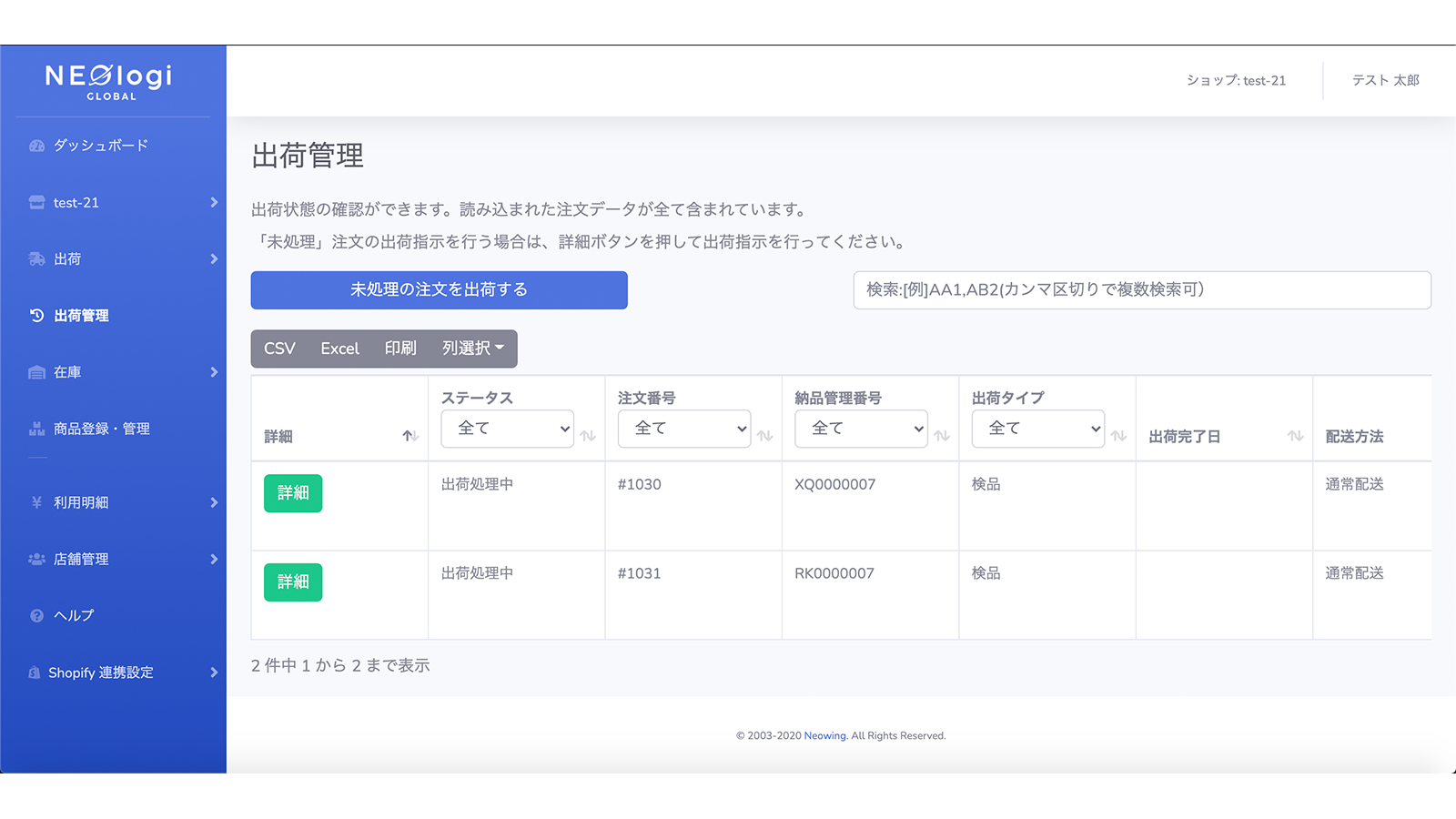 NEOlogi is a cloud-based logistics service that enables shipping within Japan and around the world. NEOlogi is a cloud-based logistics service that allows you to easily perform tasks related to shipping from a dedicated cloud-based logistics system and supports automated shipping. NEOlogi can meet various logistics needs, such as those with small shipping volumes or those who want to use the service on a spot basis.