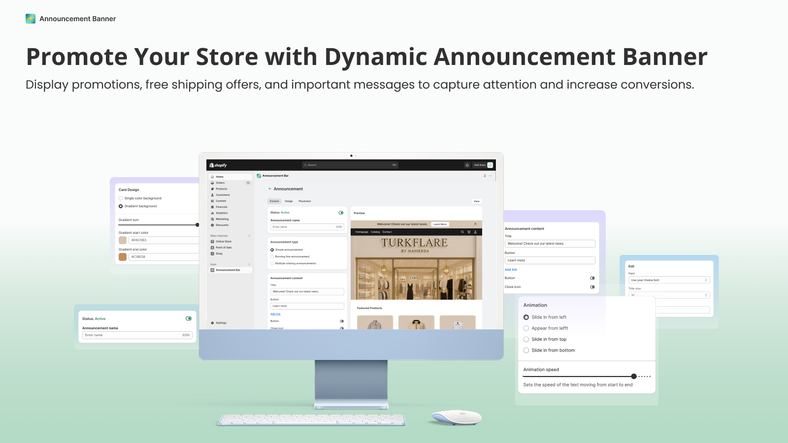Display custom announcement bars on your store to highlight promotions, news, and updates.