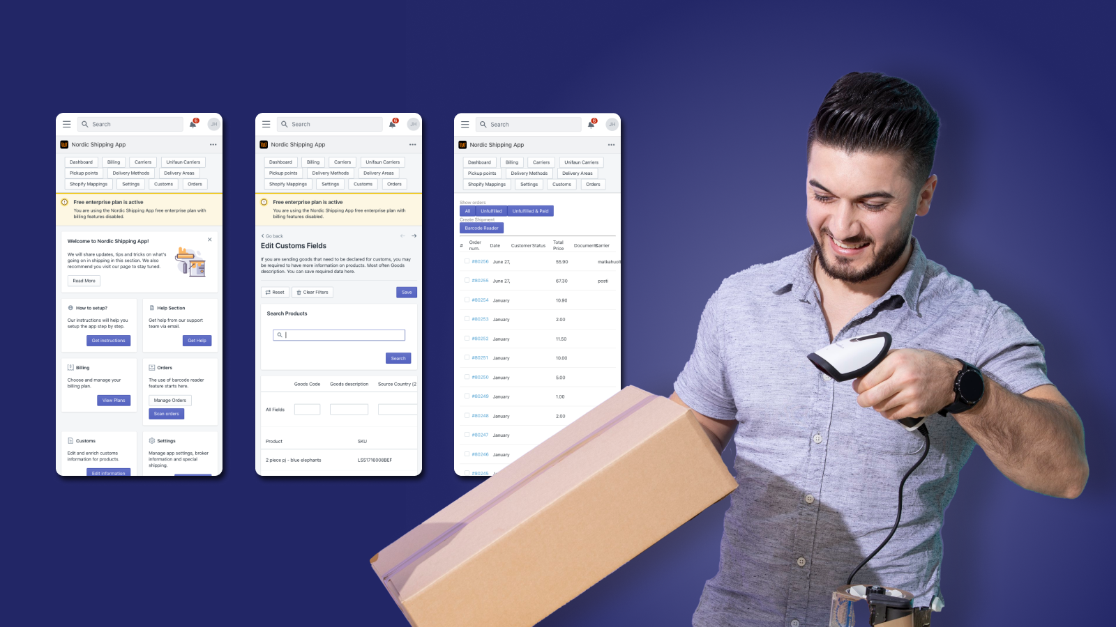 With Nordic Shipping App you can show carrier specific and custom pickup points at checkout. With Nordic Shipping app you can print shipping labels directly from Shopify orders without leaving the store or you can connect your Warehouse Management System to print shipping labels. Nordic Shipping App is integrating local shipping methods in Finland and Sweden.
