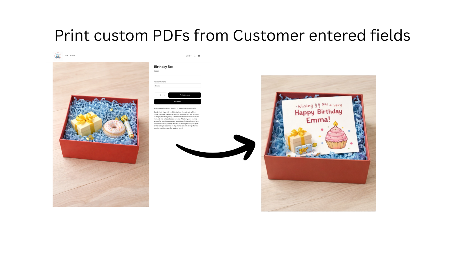 Noteable helps merchants generate personalized PDF documents using order and customer-provided data. Merchants define custom input fields on product pages and map those fields to regions in a PDF template. When an order is placed, Noteable creates a document populated with the submitted values, allowing merchants to produce consistent, order-specific documents such as notes, cards, or other custom PDFs without manual work.