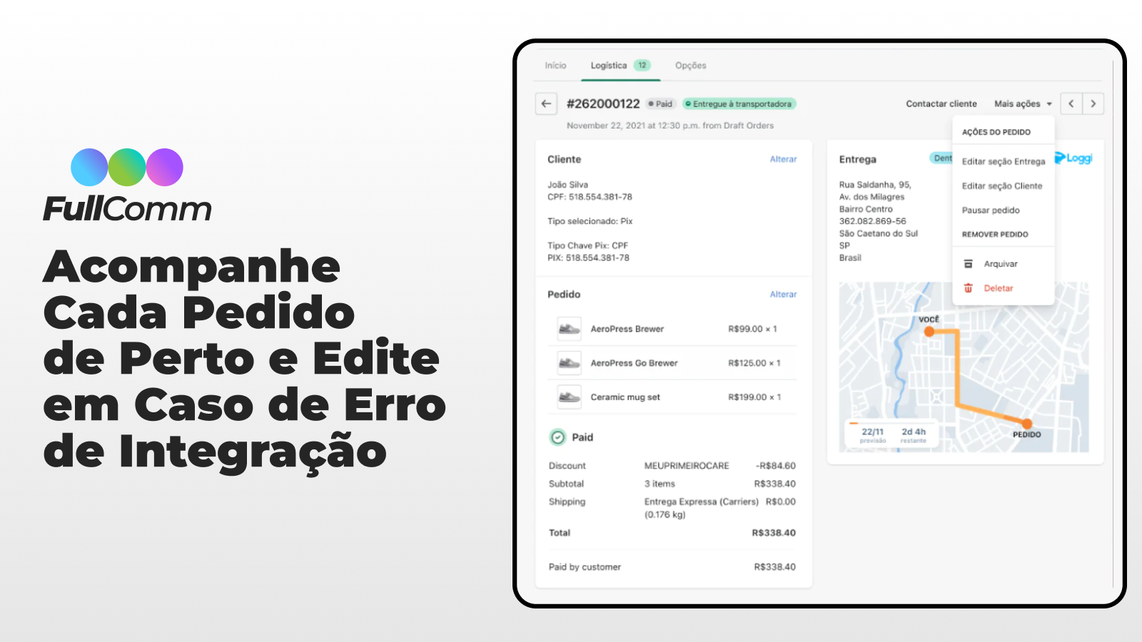 Com o App OMS FullComm sua loja virtual terá a mesma eficiência operacional de grandes varejistas online. Ofereça uma experiência de compra de alto nível com integrações entre ERP, WMS e TMS, além de notificações de entrega (via e-mail, SMS e WhatsApp), ótimos contratos de frete e uma página de acompanhamento de pedido incorporada na sua loja. Opere com múltiplos centros de distribuição, lojas físicas e use o dashboard para acompanhar todas as etapas dos pedidos em tempo real.