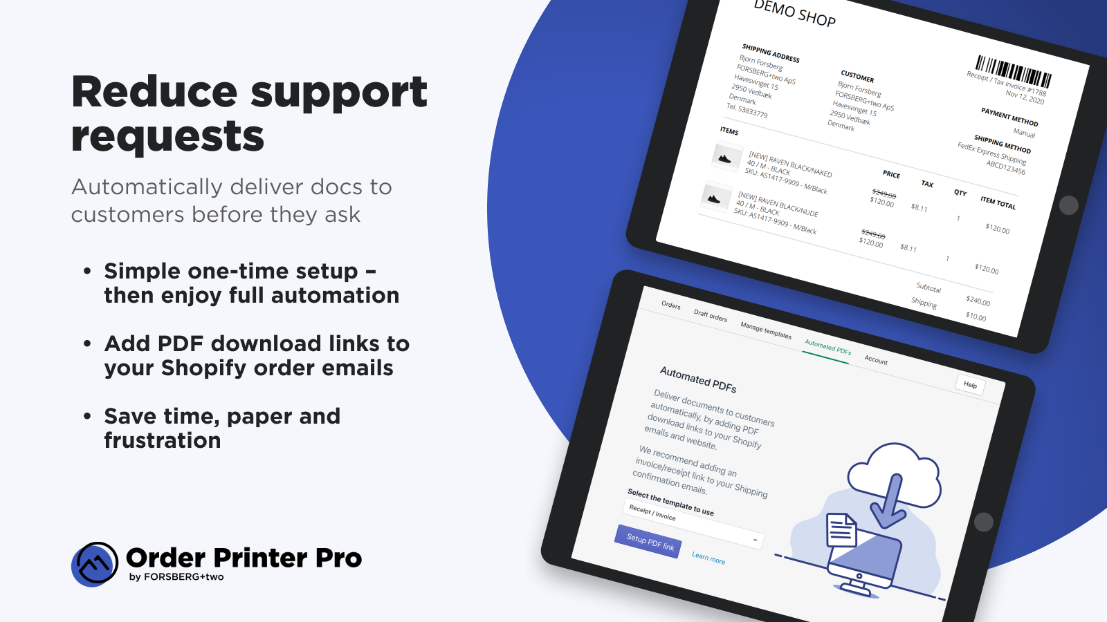 Automated PDF invoices, receipts, packing slips. Tax Compliant