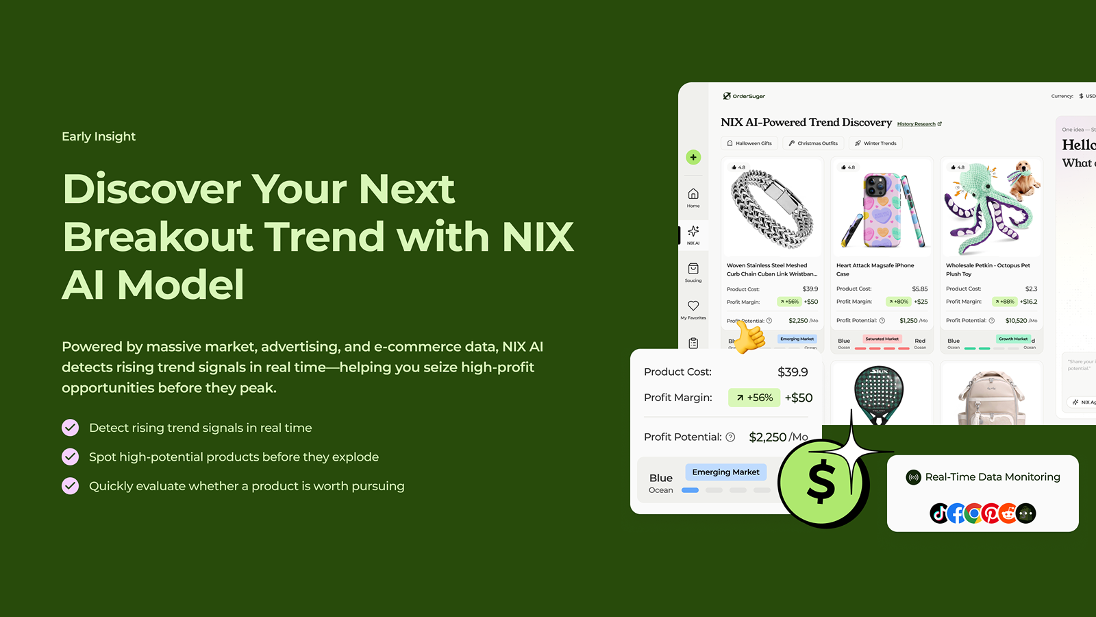 Find winning products using real-time trends. Save research time and sell what customers want.