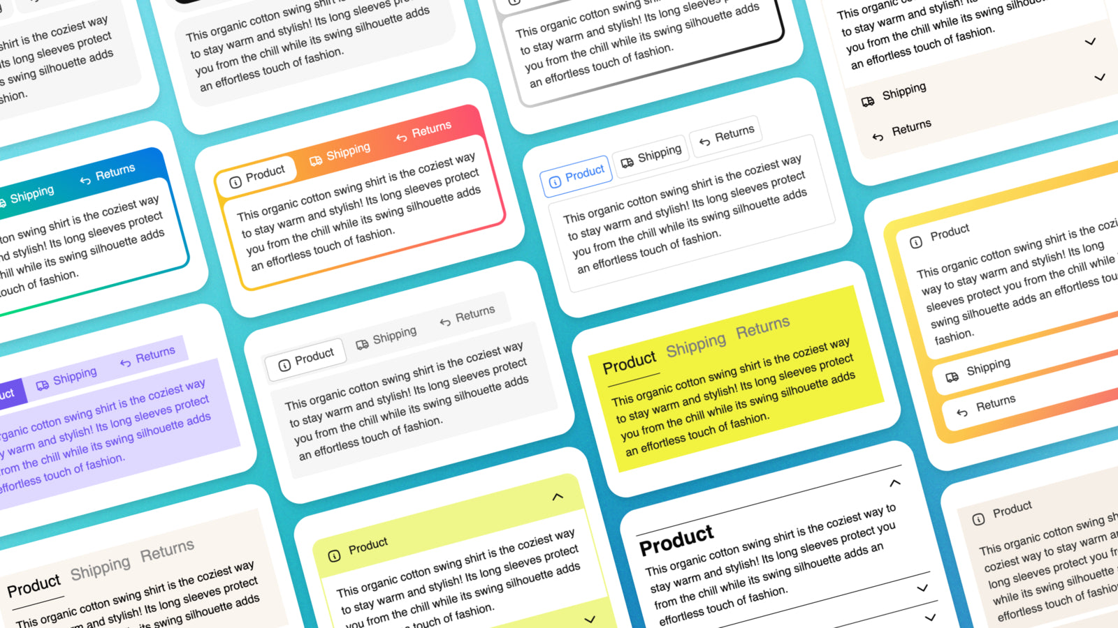 Easily add professional tabs or accordions to your products.