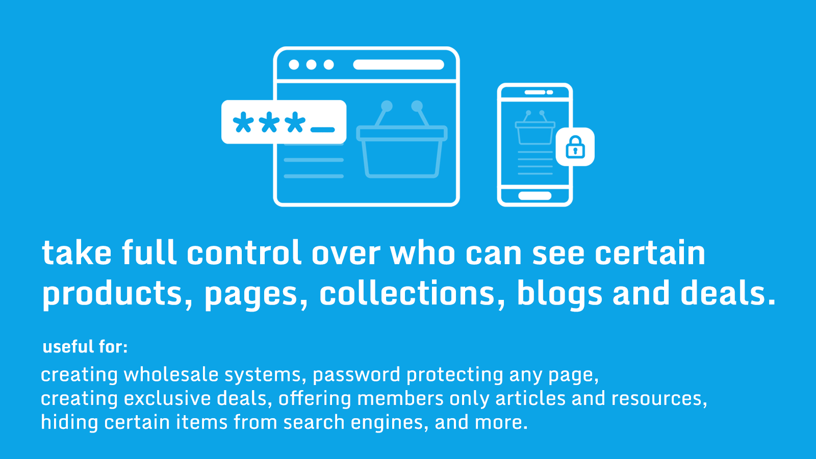 Lock product and pages for store. Grant access with passwords or customer tags and more.