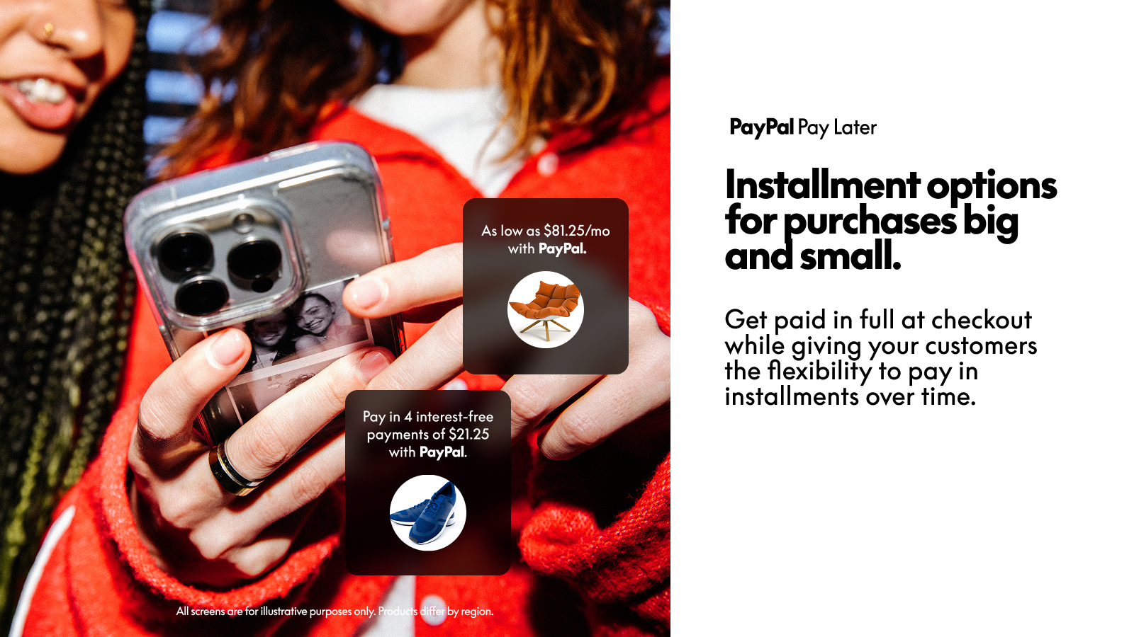 PayPal Pay Later messaging is a no-code solution to help you reach new customers, boost sales, and increase loyalty.