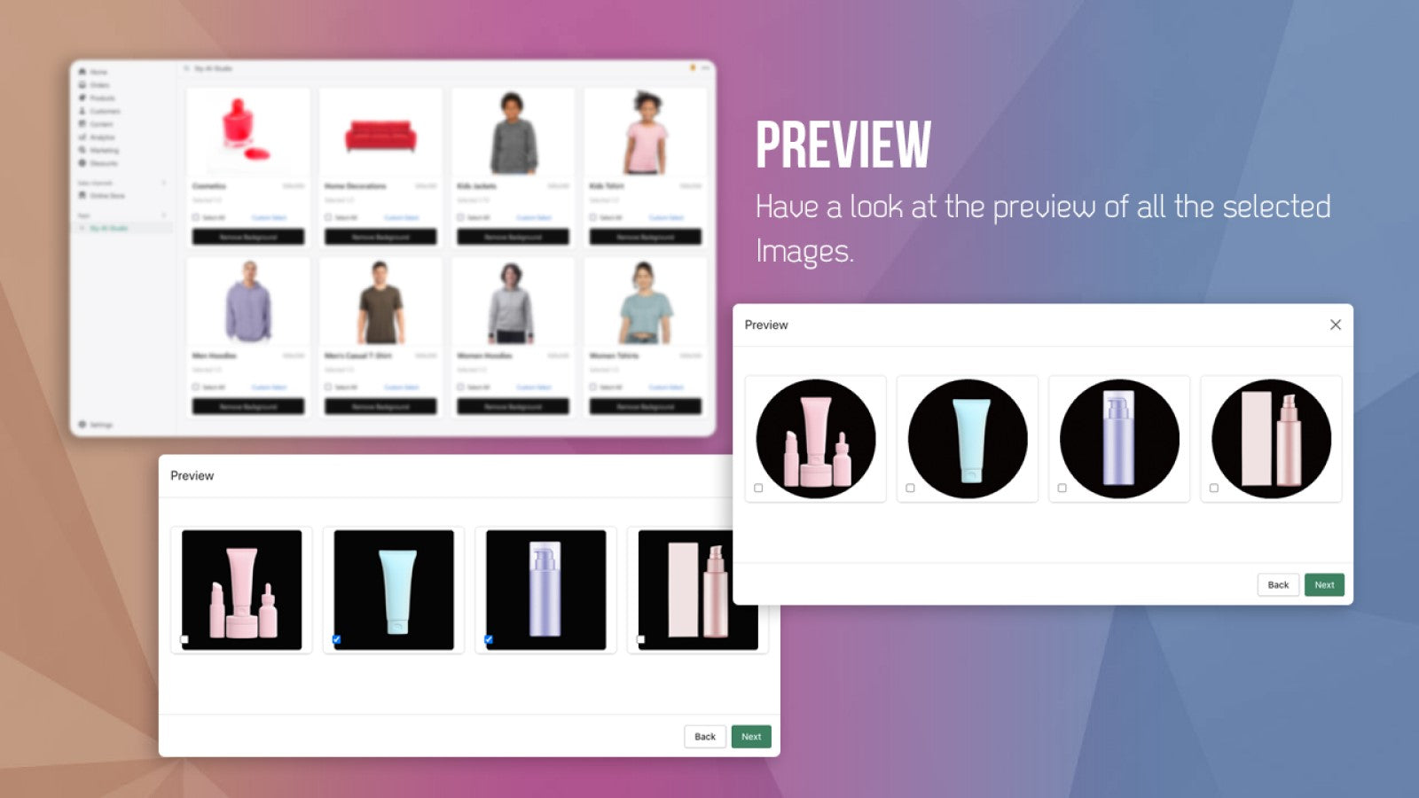 Creating striking product photos can be a time-consuming and costly process. Our AI-powered app streamlines this experience by offering powerful features designed to enhance your product images effortlessly. Move beyond traditional background removal and let our intelligent tool enhance your product presentation. Elevate your online store with visually stunning images that make a lasting impact on your customers, all with the power of artificial intelligence at your fingertips.