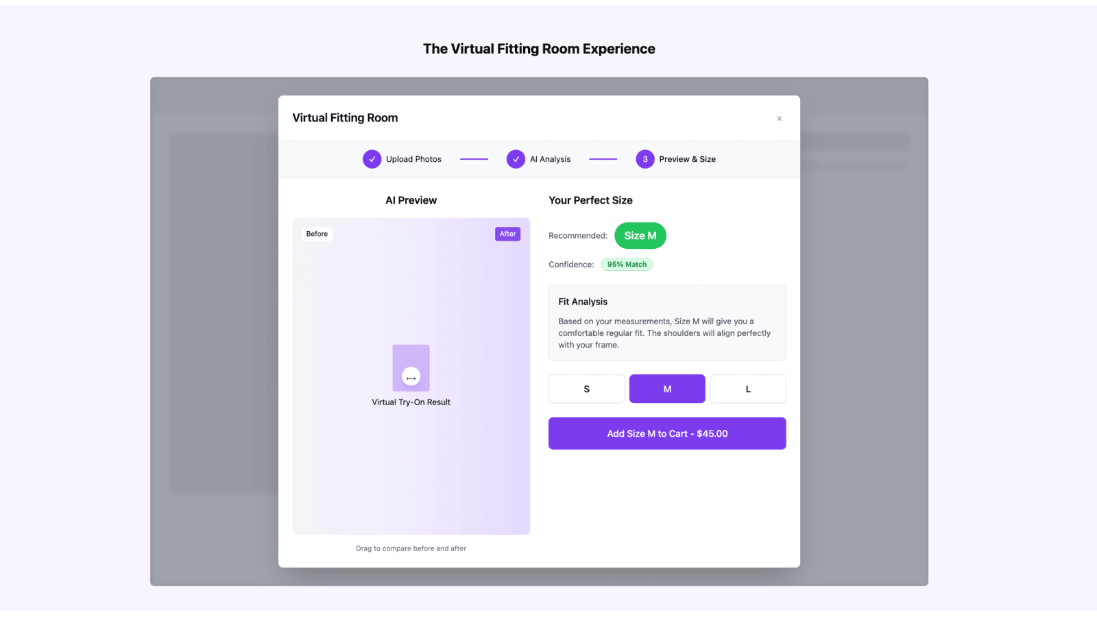 AI virtual try-ons help customers visualize fit and receive personalized size recommendations.