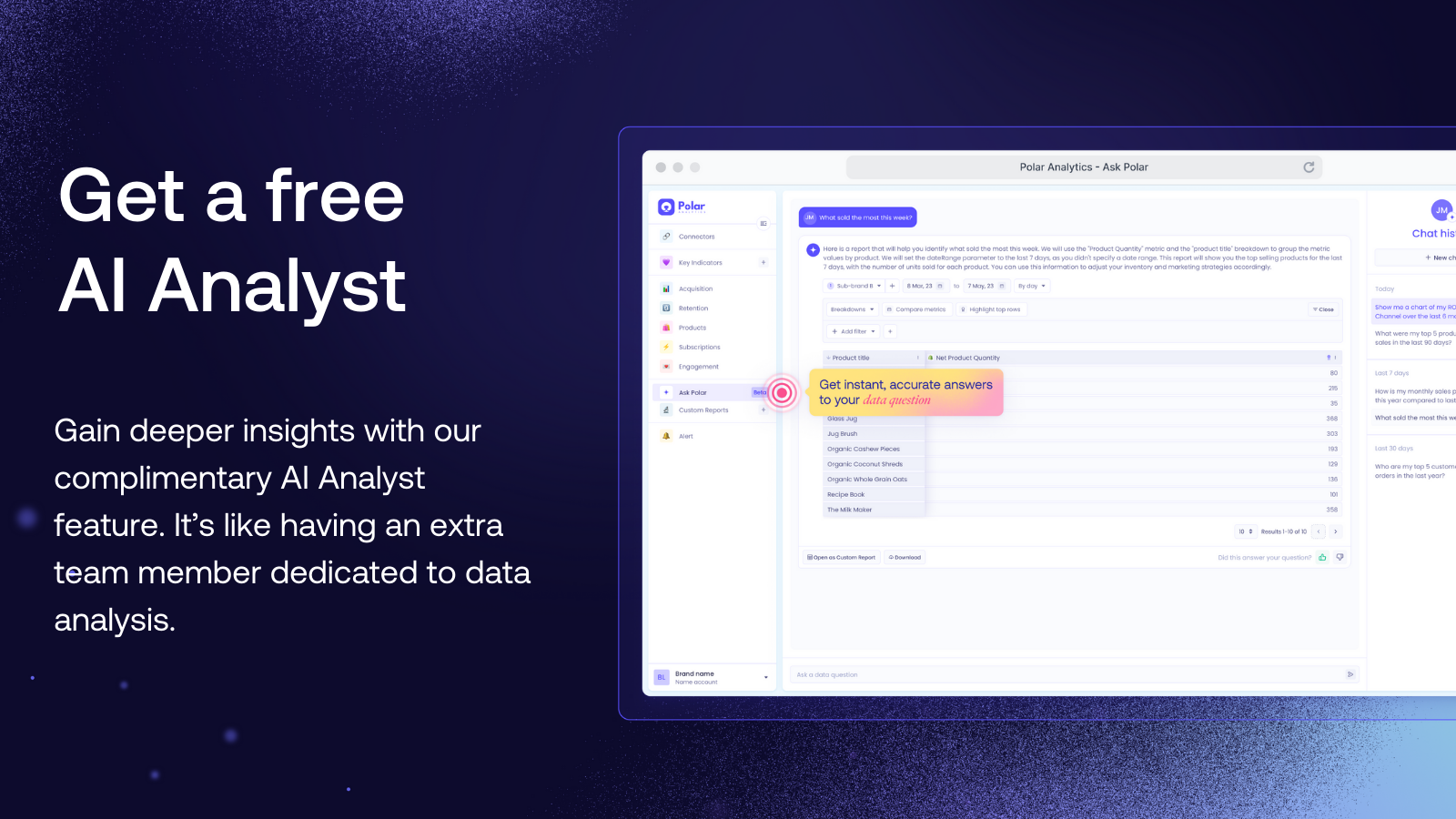 Centralize all your data in one place with our 1-click set-up business intelligence platform, start making informed decisions in minutes, and never spend your Monday doing manual reporting again. To get started, just download the App, connect your data sources, and configure your reports from a pre-loaded library of metrics. Our team will also provide you with hands-on support to help configure the dashboard.