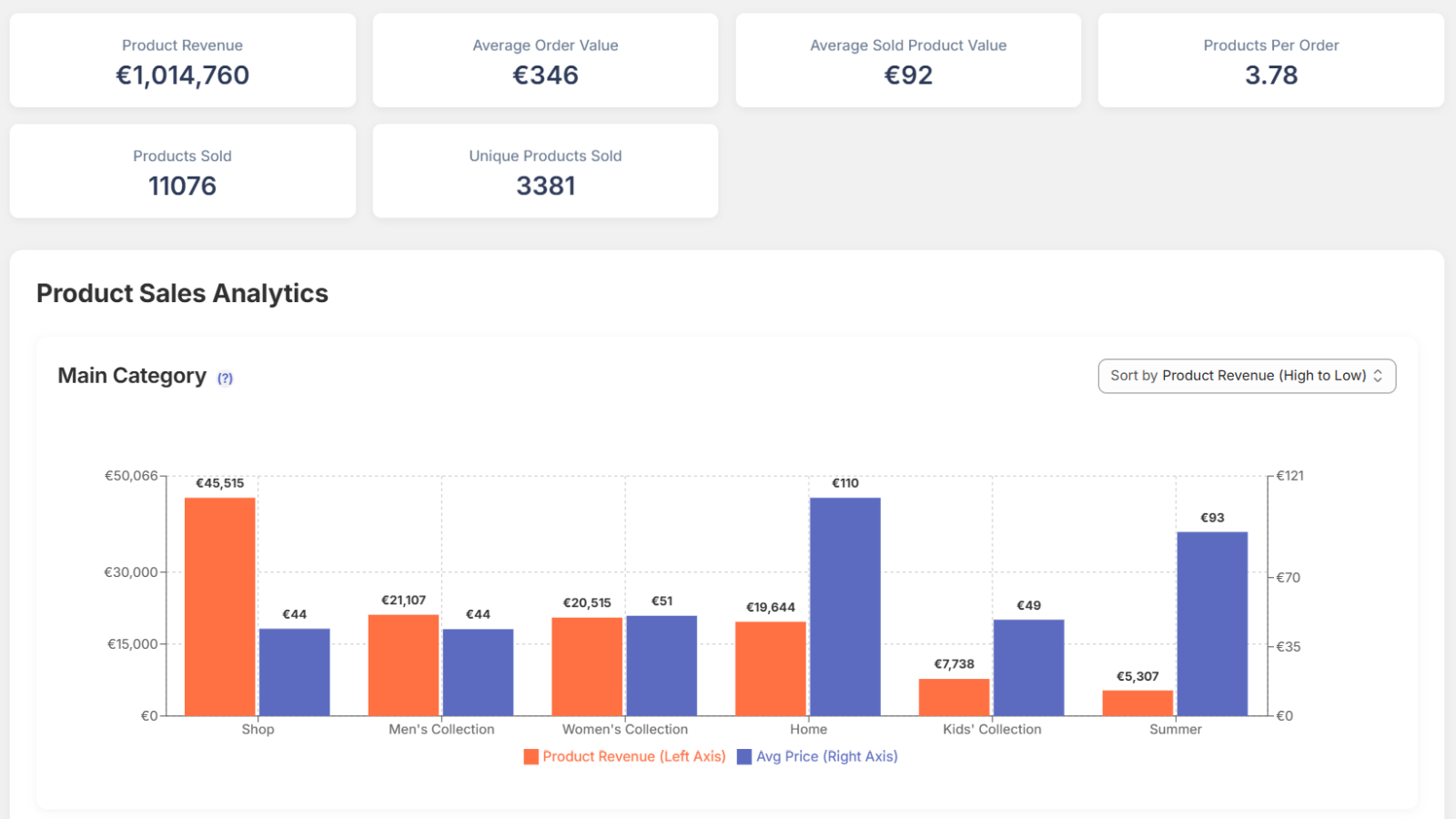 Founders pricing: -50% for December (from January plans start at $9/m). Instantly see which collections sell and which don't. Promote the ones that do well and increase ROAS and CRV. Automatic product hierarchy helps spotting winners and underperformers. Move between main and subcategories with a single click, spot opportunities and increase profits. Get analytics previously available only to the biggest stores. Built to save you time and make analytics simple. 1-click setup.