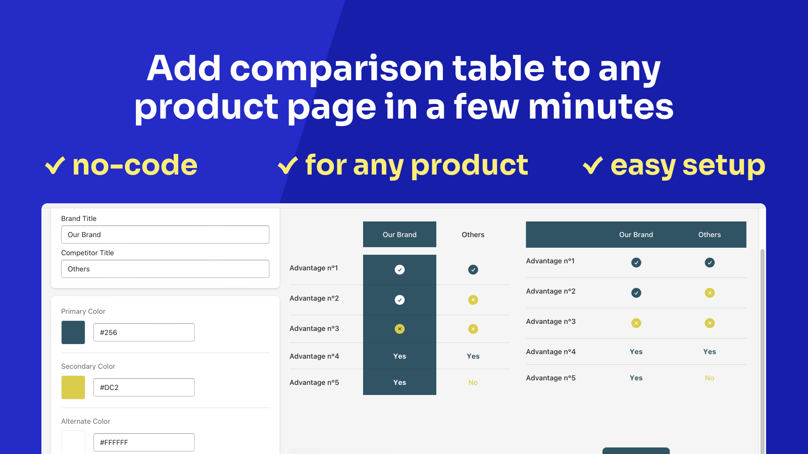 Stunning comparison tables for your store, highlighting why your products are worth purchasing