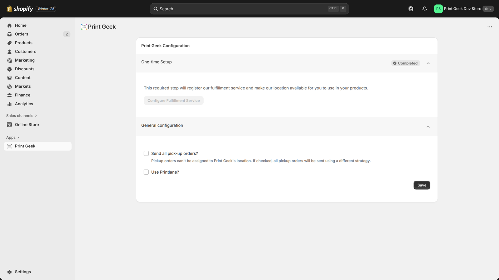 Print Geek App will enable integration between your store and Print Geek's fulfillment services
