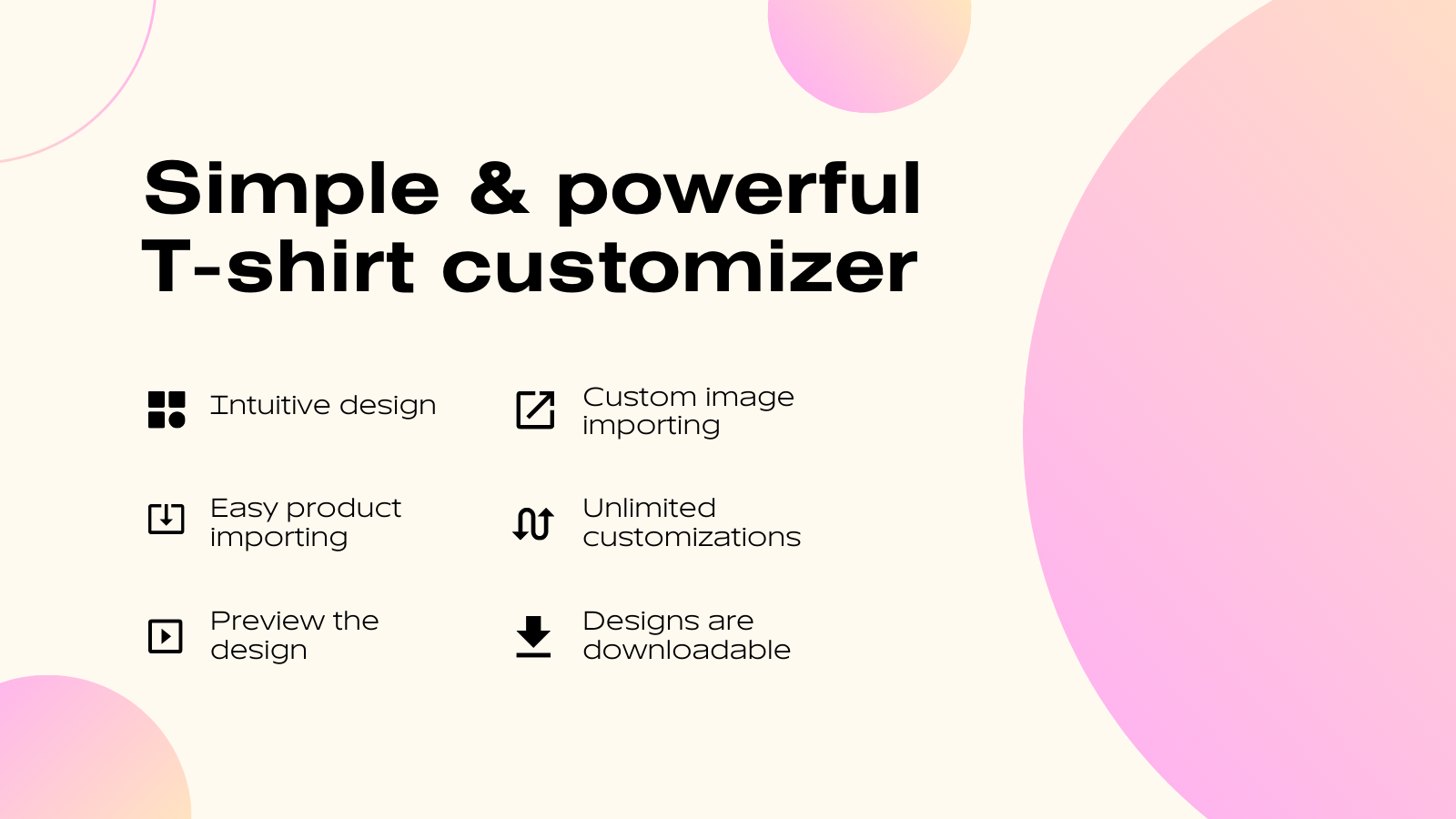 Let customers design t-shirts on their own, saving time for your design team. Our custom t-shirt designer app allows customers to create personalized t-shirts directly in your store. Built using Shopify's native language, our app is user-friendly and integrates well with Shopify sites. Enable customers to customize t-shirts with custom text and images. Get regular feature updates on the app as we are constantly working to improve and add more features.