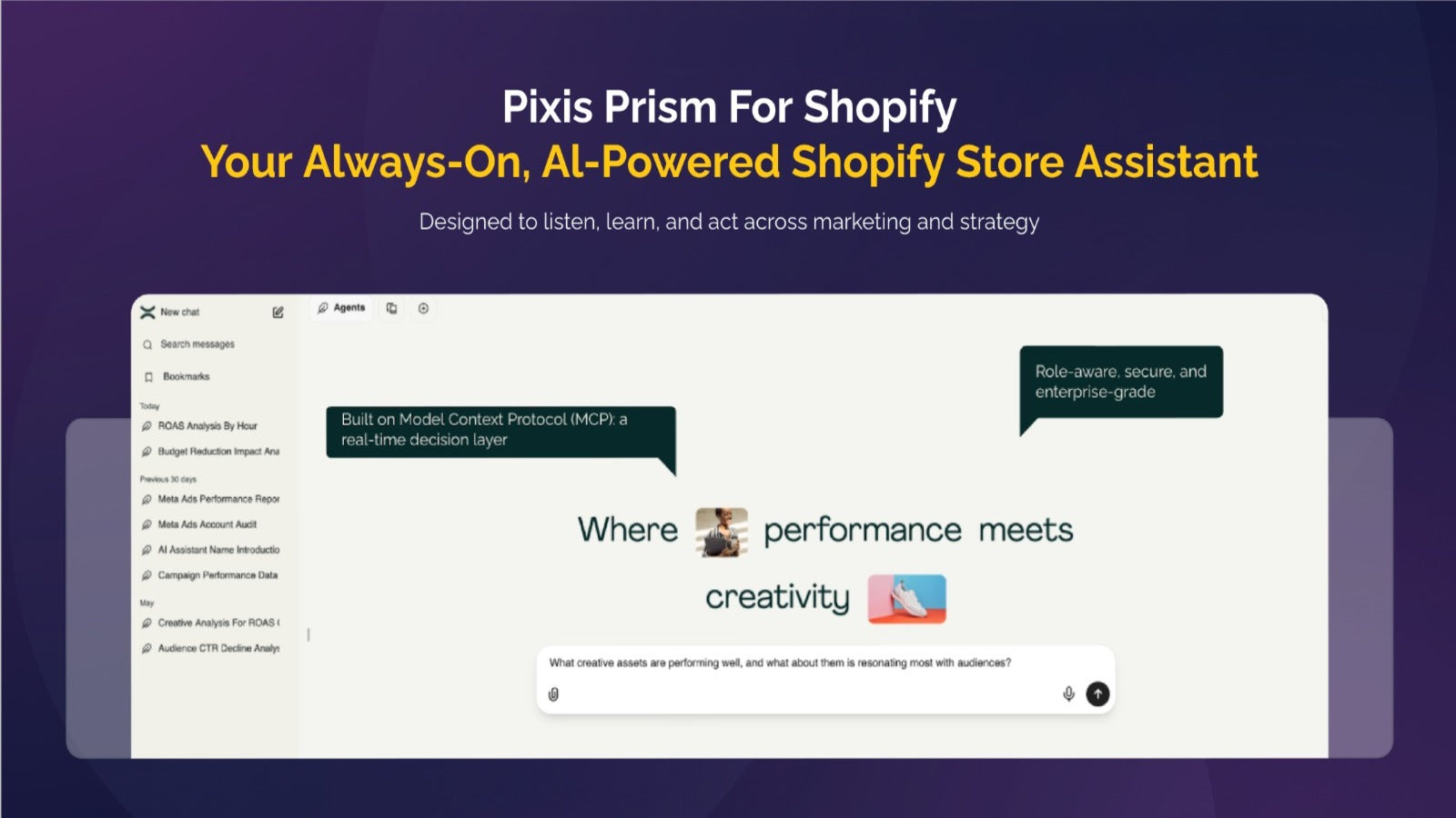 Prism brings your Shopify store and ad data together to give you a unified view of sales, attribution, audiences, and creative performance. Its chat-based agents help you analyze trends, identify issues, and review campaign health quickly. Prism helps you make informed decisions across your marketing and store operations and simplifies day-to-day workflows by turning complex data into clear, actionable insights.