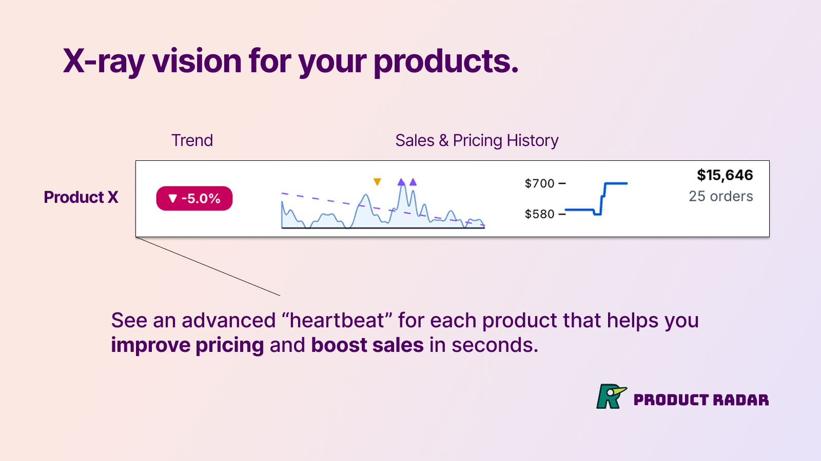 Spot trends and optimize pricing quickly with Product Radar analytics.