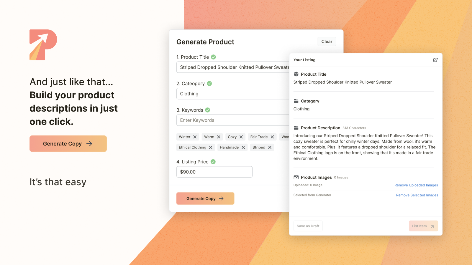 Create a product description with just one click.
