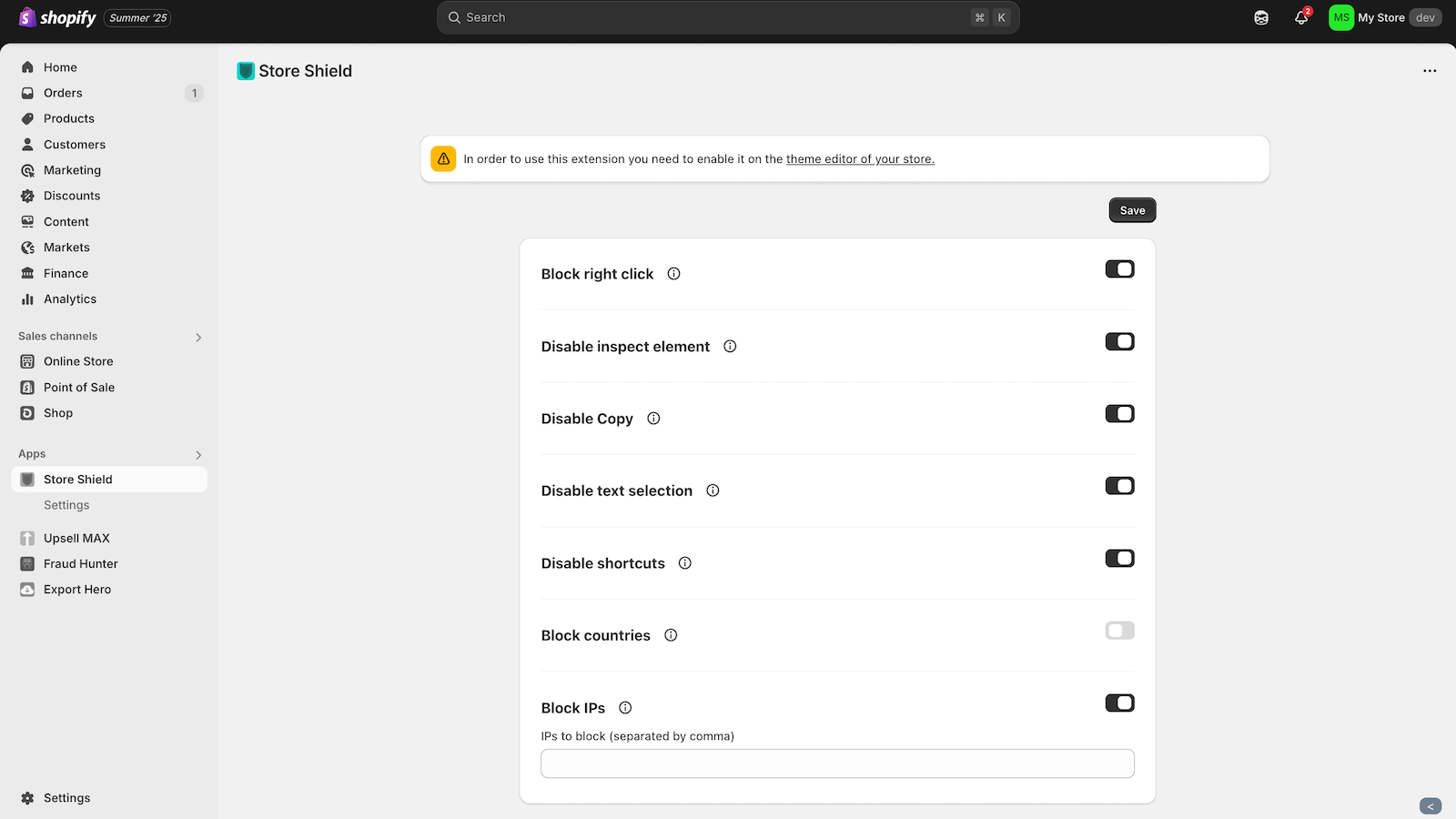 Stop unwanted visitors. Protect your content. Keep your store safe. Protectify MAX is the ultimate security layer for your Shopify store. Designed for merchants who value safety, privacy, and control, it lets you block unwanted users, prevent data theft, and protect your store from prying eyes — all in just a few clicks. Whether you want to keep your content exclusive, stop fraud attempts, or reduce server load from suspicious traffic, Protectify MAX has you covered.