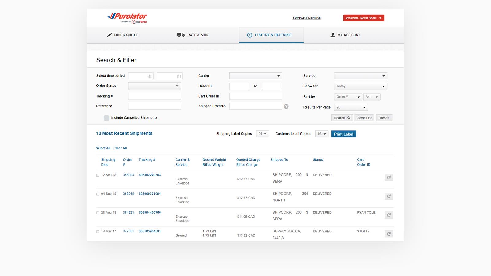 Live Shipping Rates, Bulk Label Printing & Order Tracking