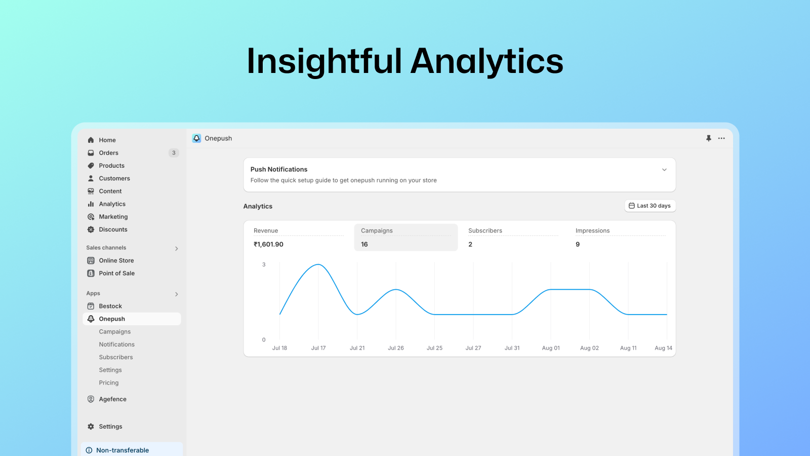 Onepush offers a solution to recover lost sales through automated push notifications. Our app specializes in recovering abandoned carts and checkouts, enticing users with exclusive offers and delivering timely, personalized messages to reignite their interest and drive conversions.