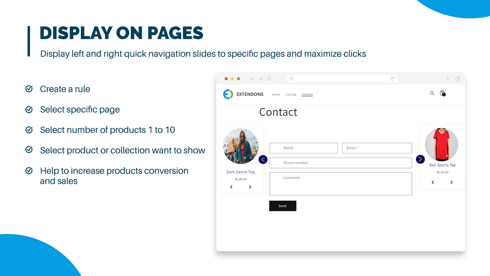 Display Frequently Bought Together product in a quick product navigator slide on the store's sidebar. Maximize your related products' visibility by showing a variety of selected products in the slide. You can display products in slides on selected product collections and pages. Set a limit for also bought products displayed in slides choose a custom order for recommended and suggested products you want to show. Match slide colors with your brand with easy customization features.