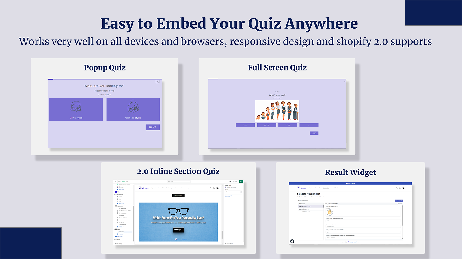 Create product recommendation Quiz. Collect leads and increase revenue through personalized results.