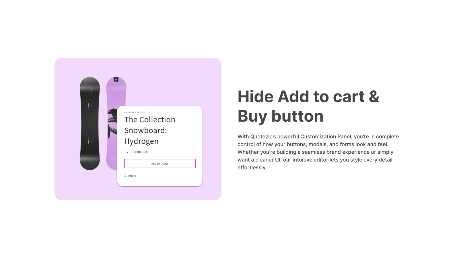 Quotezic adds a customizable “Request a Quote” button to any product page, giving shoppers a way to reach out with questions or special requests before purchasing. Perfect for custom or bulk products, it lets you personalize form, button styles, and placement. All quote submissions are collected in a dashboard, where you can review, filter, and respond with ease. Email alerts keep you notified of every new request.