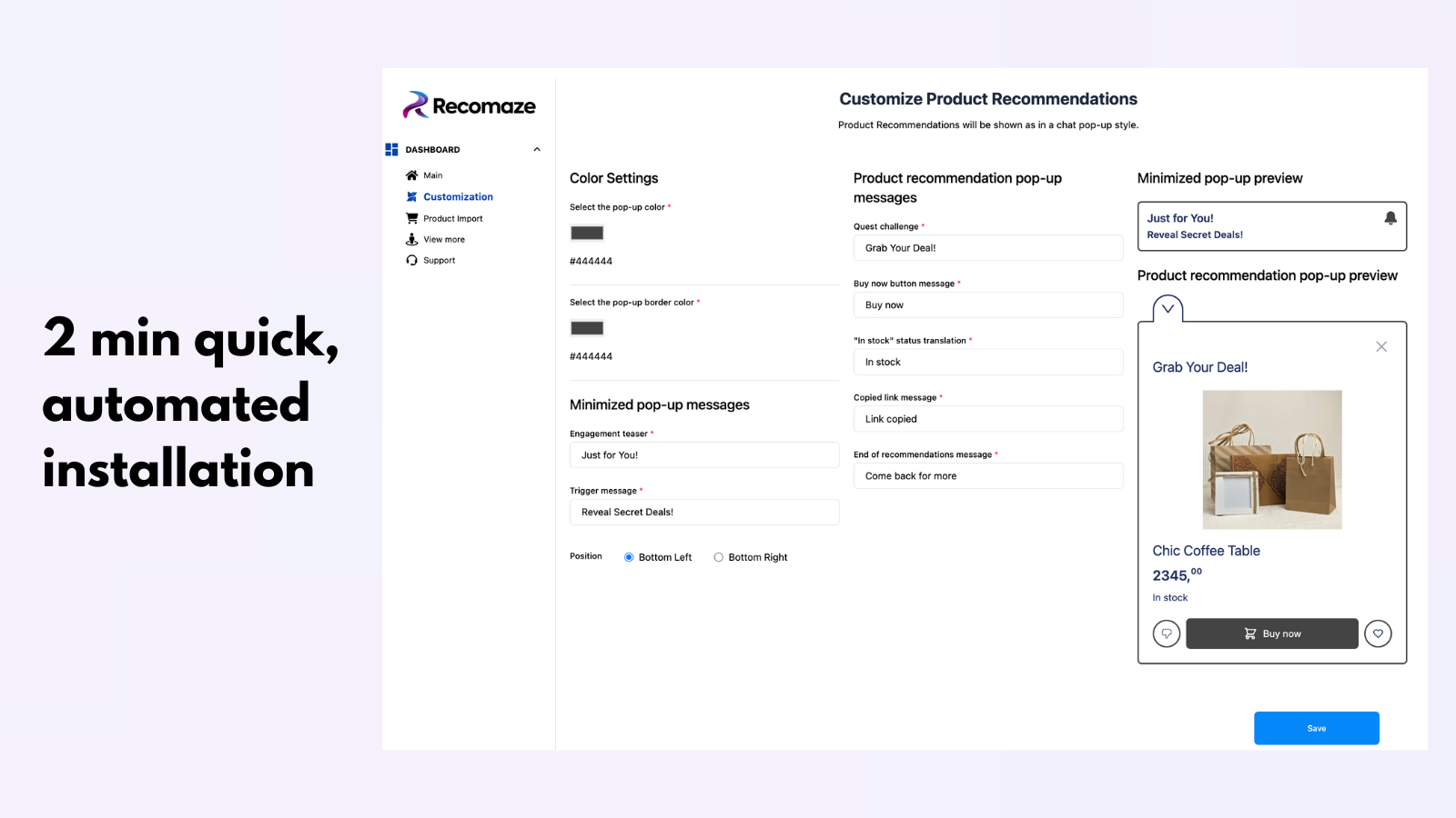 Recomaze uniquely personalizes Shopify stores for each new visitor. Our AI makes shopping personal from the start, boosting sales and conversions without relying on cookies or historical data. It’s simple to add to your store and charges only for actual results. Ideal for stores looking to enhance customer experience and sales.