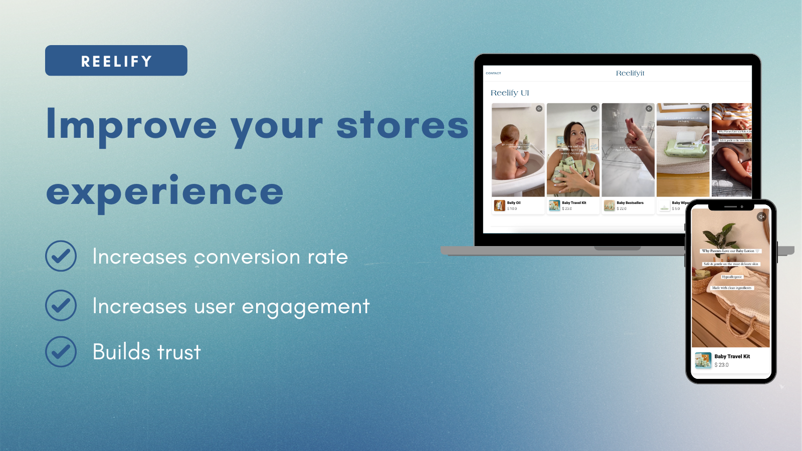 Turn Browsers into Buyers with Engaging, Shoppable Video Content Enhance your Shopify store with Reelify, the ultimate tool for integrating shoppable Instagram Reels and TikTok videos. By displaying dynamic video content directly on your store, you can boost engagement, build social proof, and convert visitors into loyal customers. With Reelify, you can seamlessly integrate high-speed, autoplay videos on product pages and homepages, showcasing your products in action and making it easy to buy.