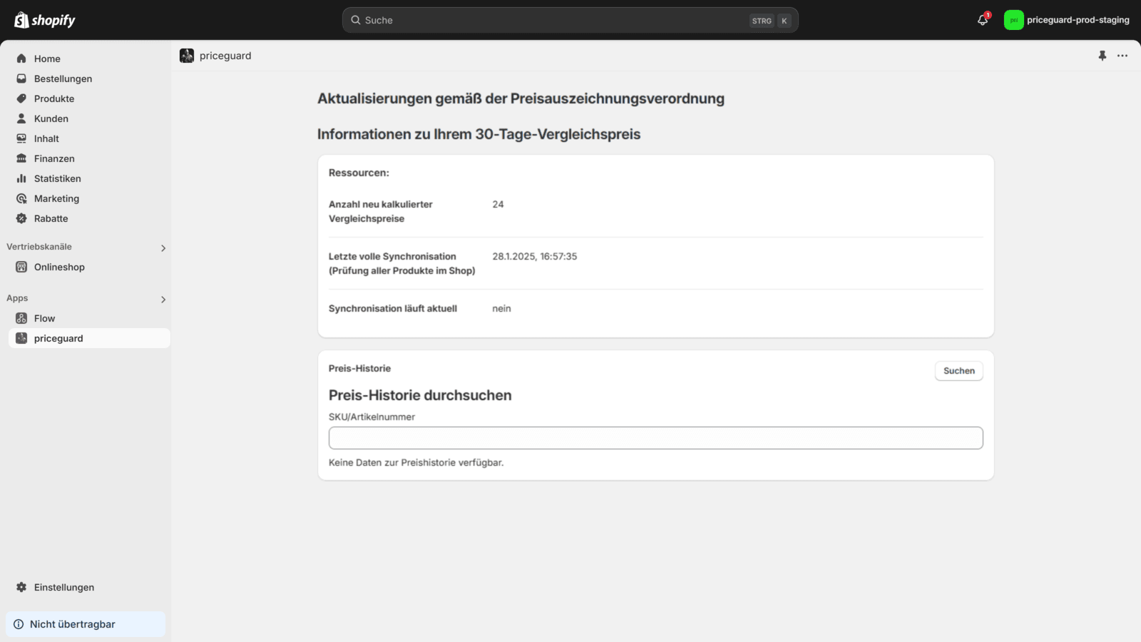 Die "Omnibus-Verordnung" in der Preisauszeichnungsverordnung stellt Shop-Betreiber vor neue Herausforderungen. Mit Priceguard automatisierst du diesen Prozess und minimierst das Risiko von Abmahnungen oder rechtlichen Problemen. Die App ist einfach zu integrieren, benutzerfreundlich und sorgt dafür, dass dein Shop immer up to date ist. Der Vergleichspreis entspricht mit dieser App dem günstigsten Preis der letzten 30 Tage.