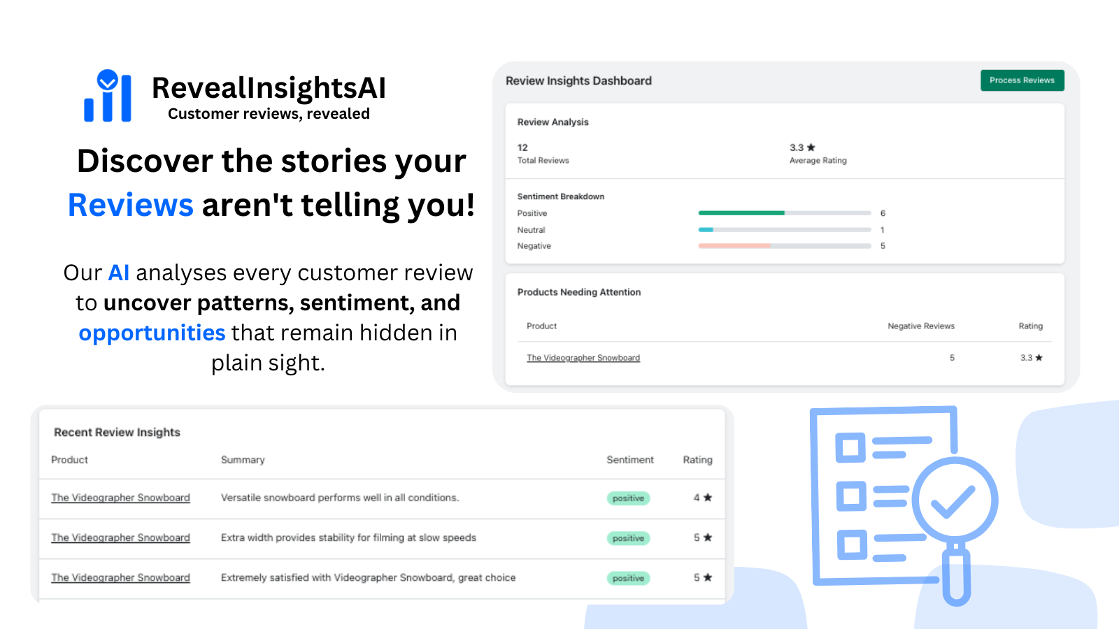 Transform reviews into actionable insights with AI. Save time and improve products automatically.