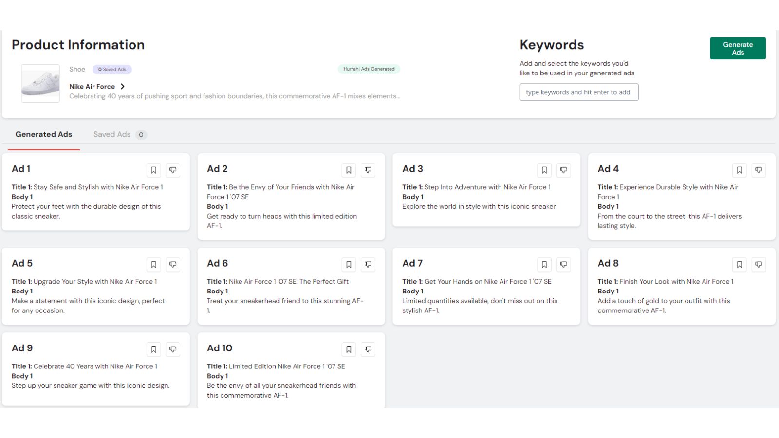 RevRevAI generates high performing adwords copy for your products at the click of a button.