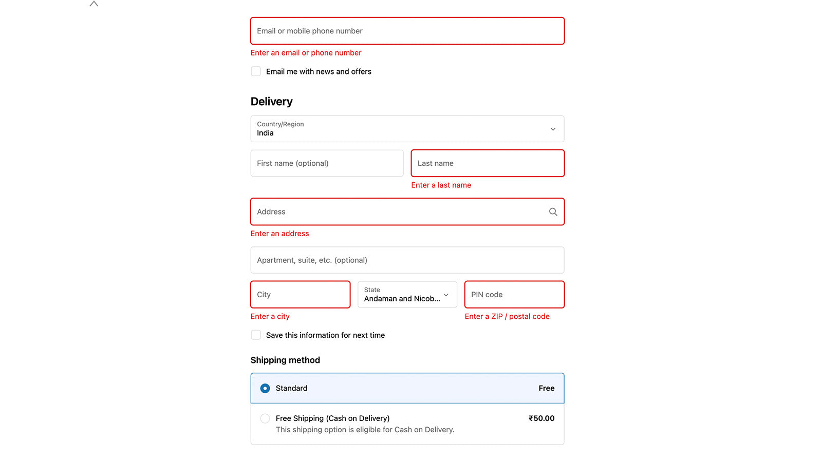 Checkout feature which removes COD option and tags orders from pin codes with higher fake orders.