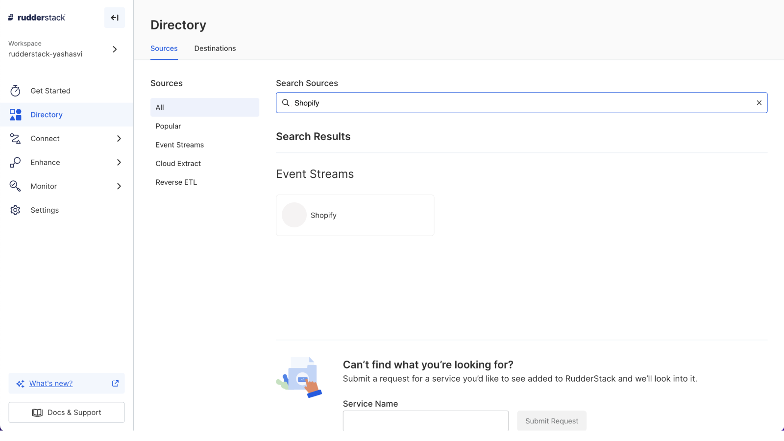 Connect your Shopify store with RudderStack. Track e-commerce event data like product purchased, product viewed, and more from Shopify and send it to your preferred tooling platforms via RudderStack. Track near real-time events via the Shopify store and backend to capture customer touchpoints related to your users' activities in Shopify. You will need a working RudderStack data pipeline - simply set up a Shopify source in RudderStack, and you’re good to go!