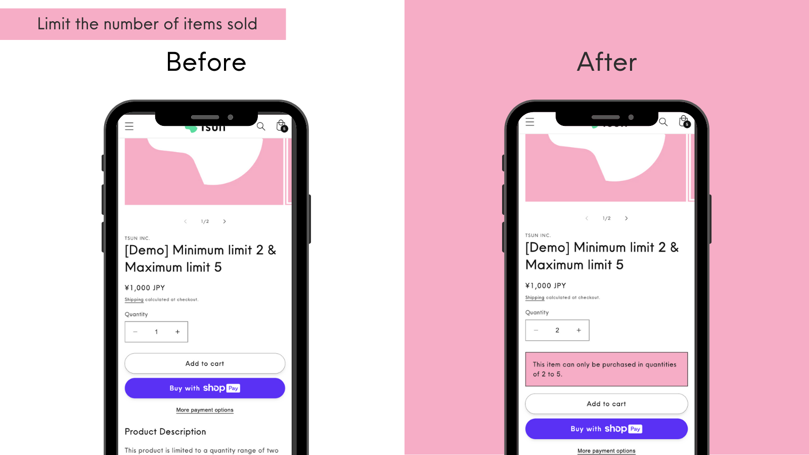 Easily set up in 2 steps, our app allows for quantity, price, and bundling limits all in one.
