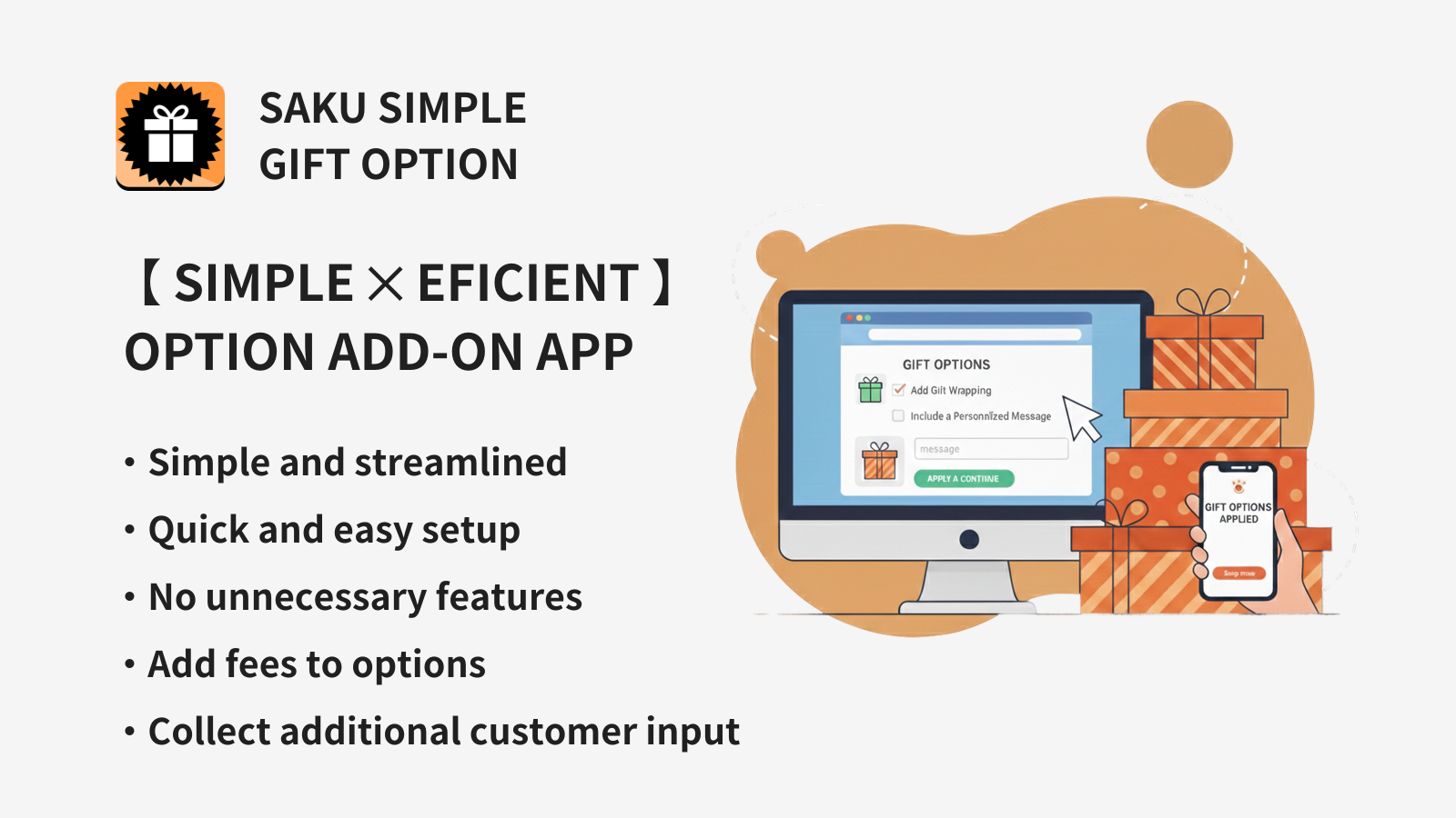 Add gift options to your product pages, with the ability to set additional fees for each option. When customers select an option, you can also collect extra details such as "ribbon color" and "gift message text."
