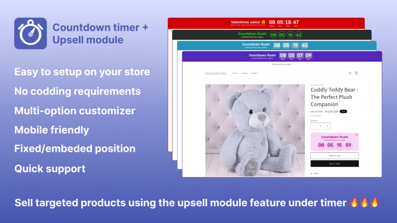 Drive sales with customizable timers and a unique upsell module—maximize conversions effortlessly!