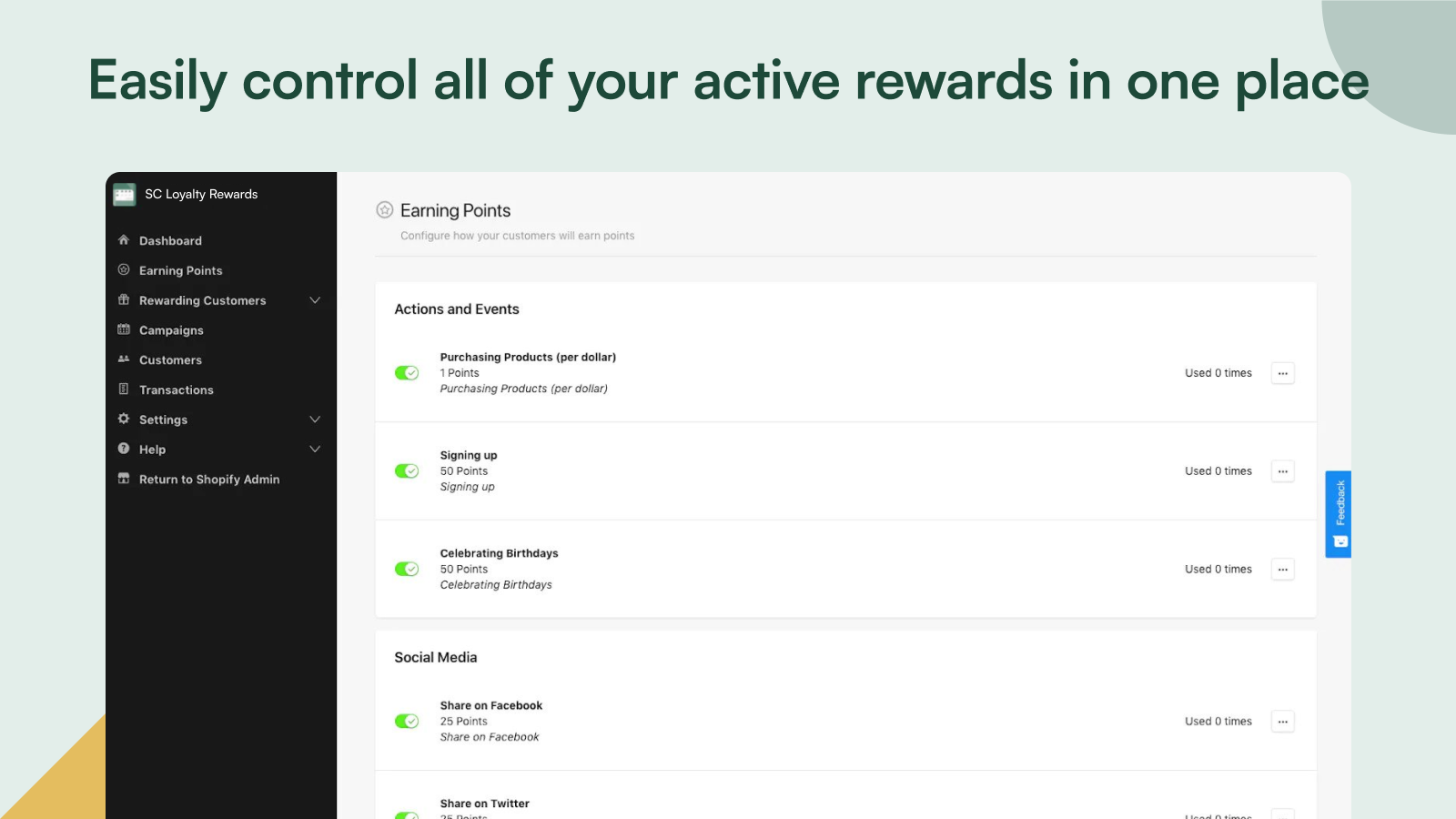 Boost repeat purchases with a custom loyalty program: points, rewards, tiers, and referrals.