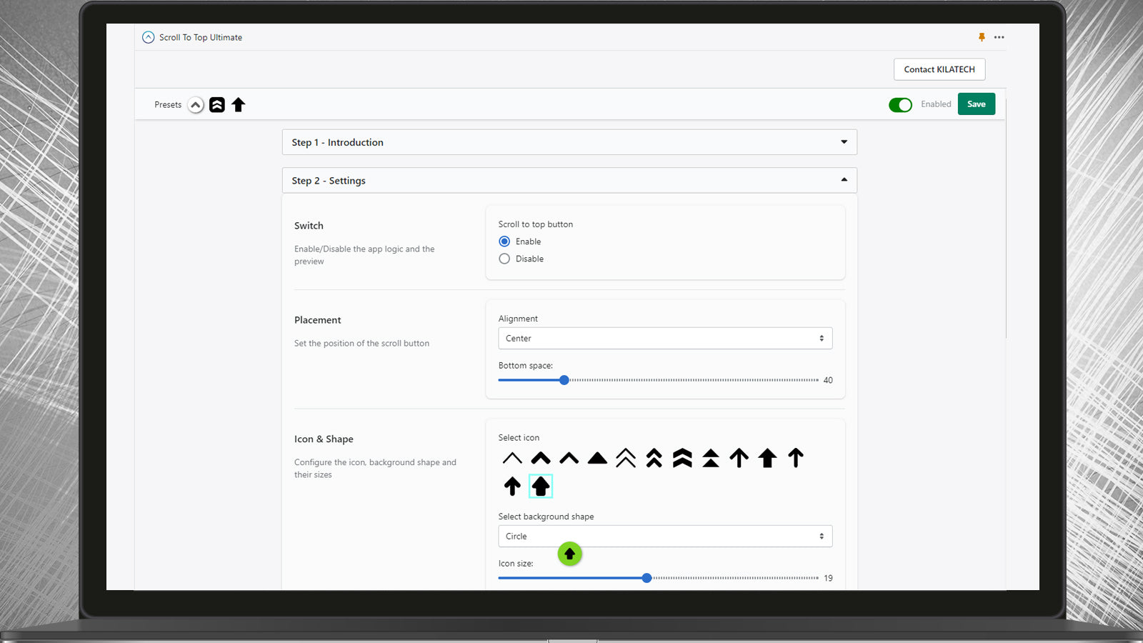Scroll To Top Ultimate offers a simple yet useful UI component that can be utilized as a shortcut to scroll a page to the top. User experience is all about how easy to navigate and how pleasing to see the website. Scroll to top button is an attractive element that improves the easiness of mobile browsing and pages with lengthy content. Users do not have to scroll the page all the way to the top using their finger or mouse wheel if a scroll to top button is available in your store.