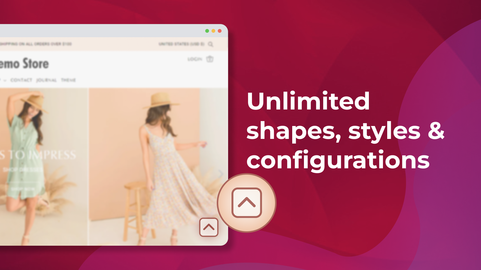 Add a stylish scroll to top button to your store that matches your style. One click installation.