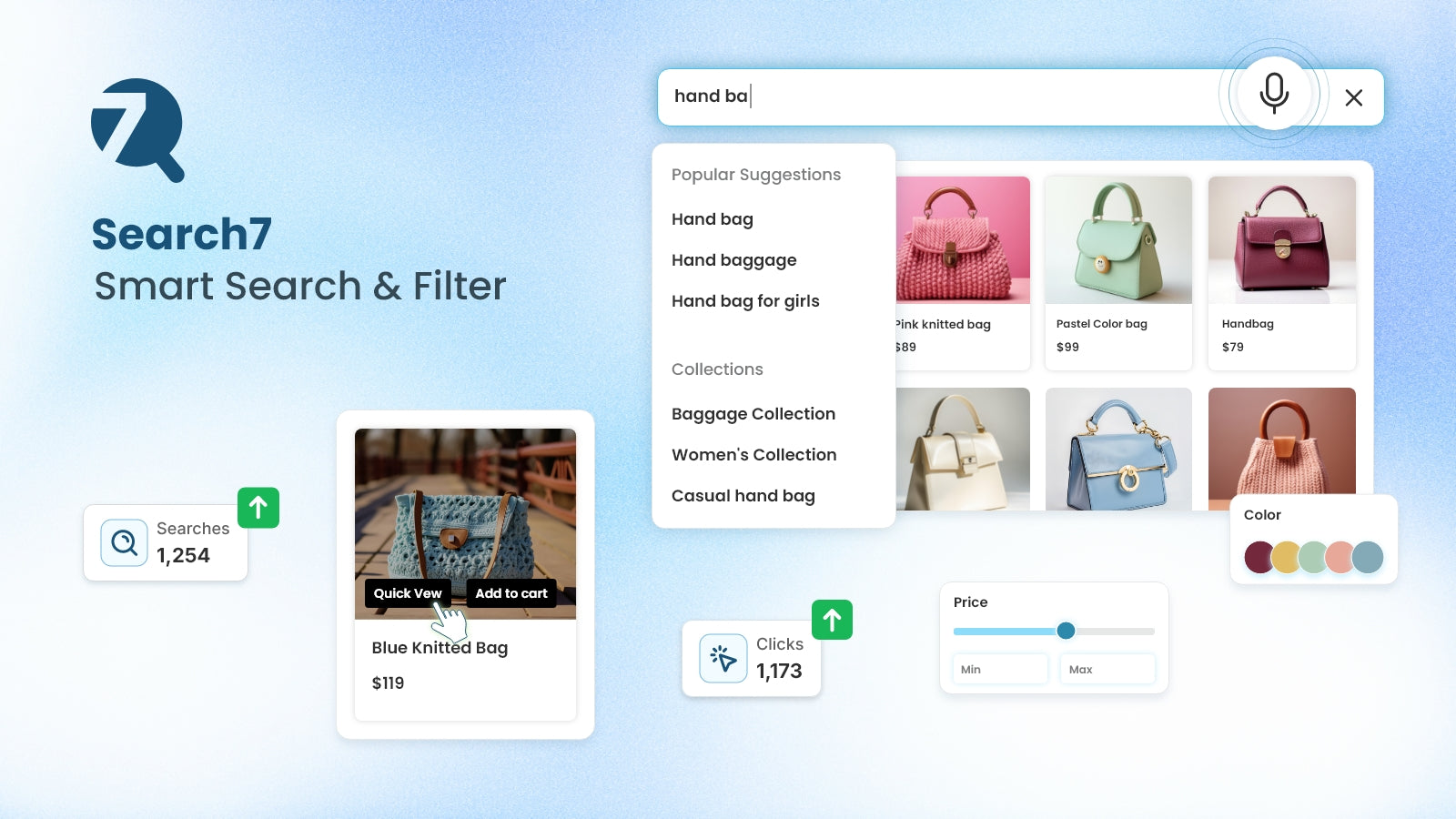 Supercharge your Shopify store with Search7 - the smart search solution! Deliver instant results, dynamic filters, and a mobile-friendly experience for seamless navigation. Customize effortlessly to match your theme and gain valuable insights with search analytics. Optimize inventory, enhance product discovery, and boost sales. Help shoppers find what they need faster and increase conversions with Search7 - the smarter way to search!