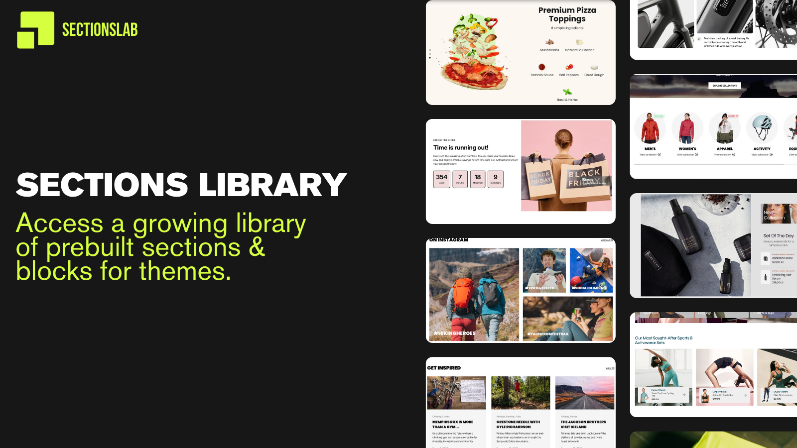 SectionsLab provides a library of ready-to-use theme sections for Shopify stores. Instead of hiring developers or spending hours customizing code, merchants can browse our collection of professional sections and install them directly into their themes. Each section is fully customizable and works seamlessly with Shopify's theme editor. Whether you need hero banners, product showcases, testimonials, or call-to-action sections, SectionLab makes it easy to enhance your store's design without coding