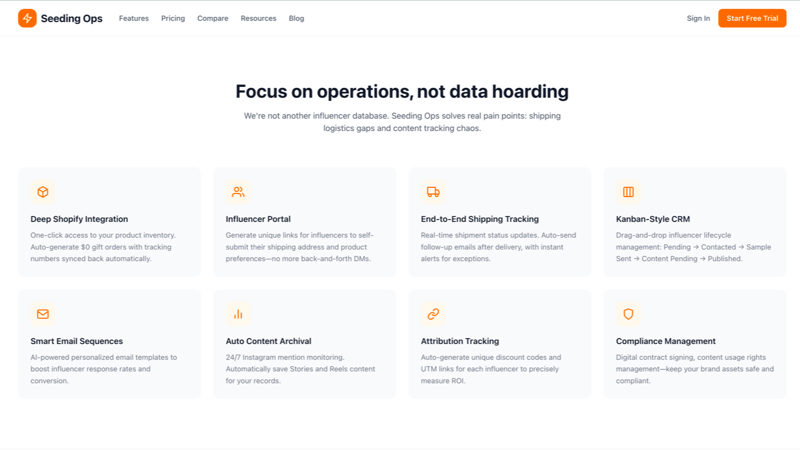 Seeding Ops helps you scale product seeding programs by removing manual coordination. Generate unique claim links for influencers to select gifts and provide shipping info on a branded page. The app automatically creates Shopify orders, syncs tracking data, and sends delivery notifications. Stop juggling spreadsheets and DMs. Automate your internal logistics so you can focus on building creator relationships and driving brand growth.
