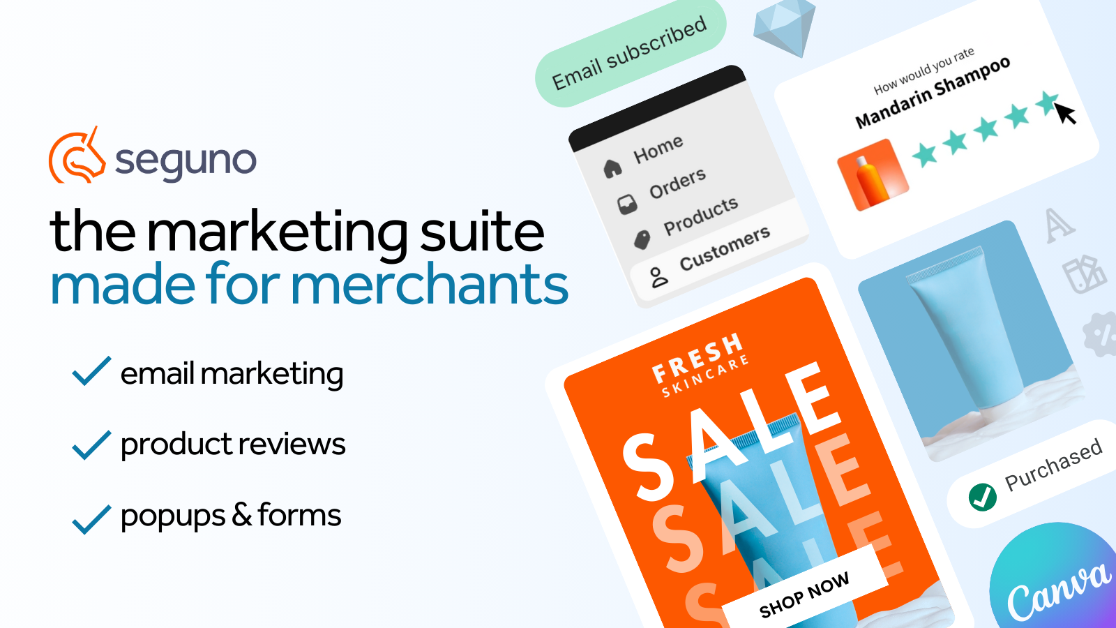You work hard to drive traffic to your store—Seguno Popups & Forms helps you make the most of that traffic. Built exclusively for Shopify, you can easily create high-performing pop ups, trigger custom site experiences, embed forms, and track your success from one convenient place inside the Shopify platform. With our no-code editor, 30+ templates, and Canva integration, it’s easy to design on-brand pop ups; and with advanced targeting tools, you'll reach the right visitors at the right time.